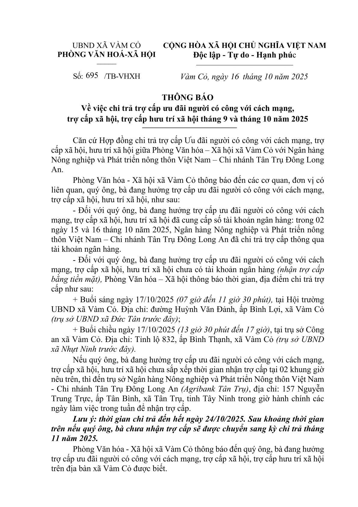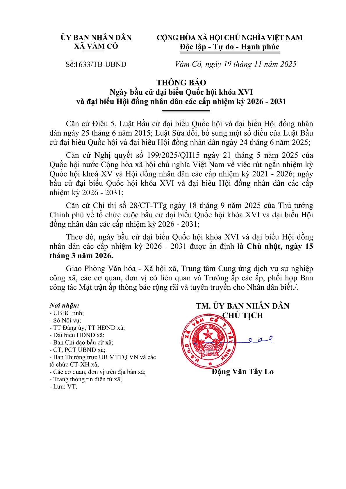 Sáng ngày 26/12/2025, Ủy ban Bầu cử xã Vàm Cỏ tổ chức phiên họp thứ nhất nhằm báo cáo...